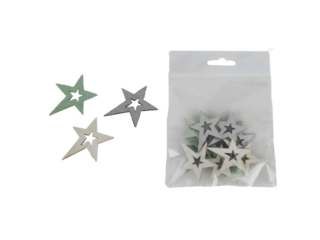 Hvězda 4,1cm-12ks, bílá, šedá, zelená