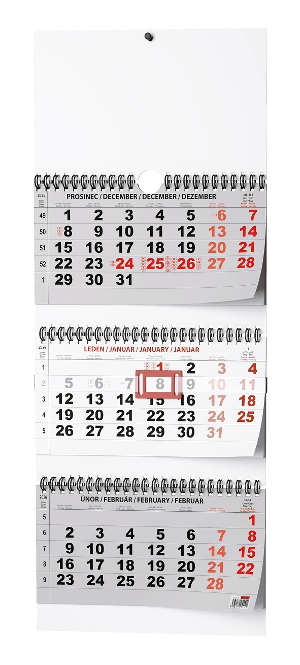 Nástěnný kalendář Tříměsíční skládaný.