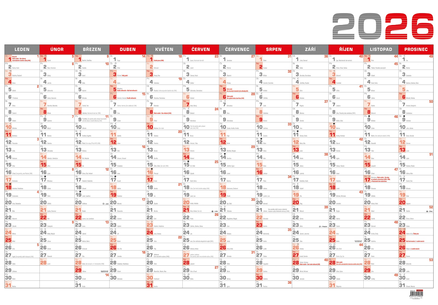 Velký nástěnný kalendář vhodný pro kanceláře a