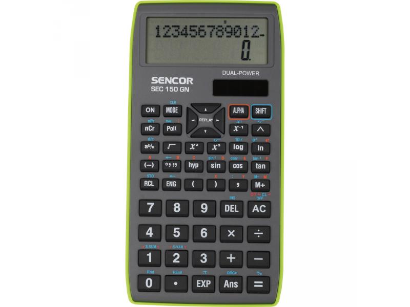 Školní kalkulačka v kombinaci šedo-zelené s pevným