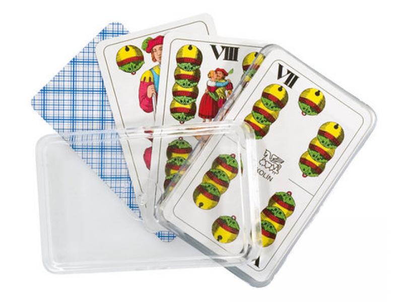 Hrací karty v plastové krabičce. Balení obsahuje