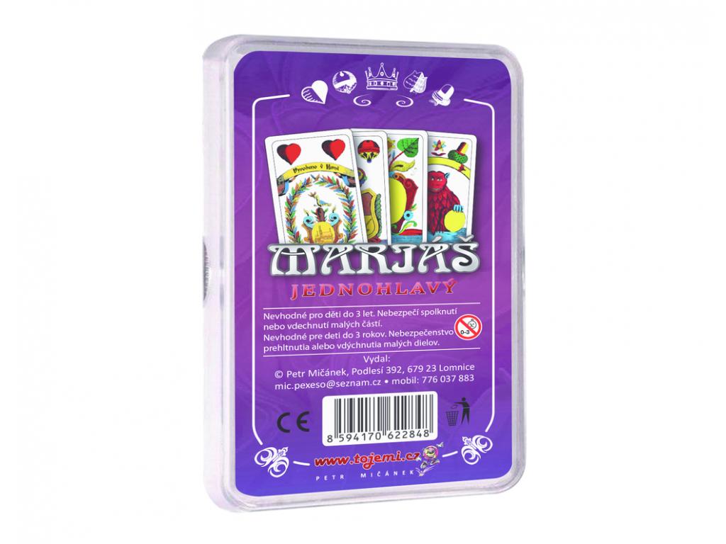 Mariášové hrací karty jednohlavé. Balení obsahuje