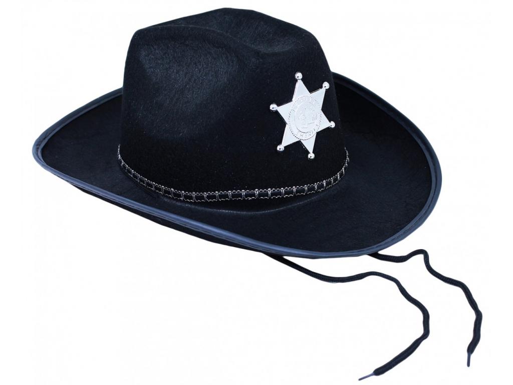 Karnevalový klobouk šerif černé barvy s odznakem a