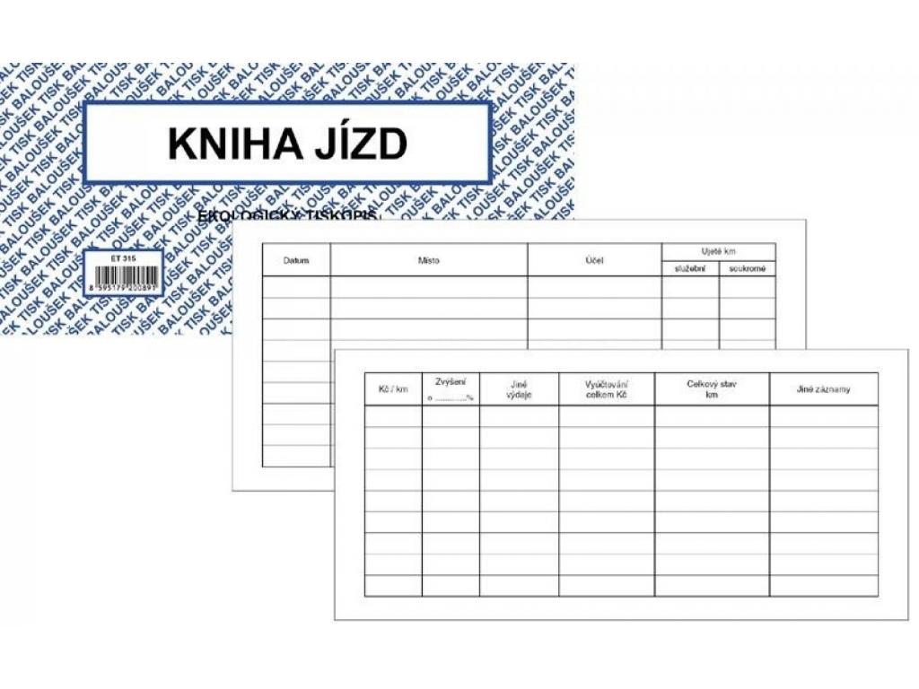 Kniha jízd 1-3 A4. Pro firemní a soukromé vozidla.