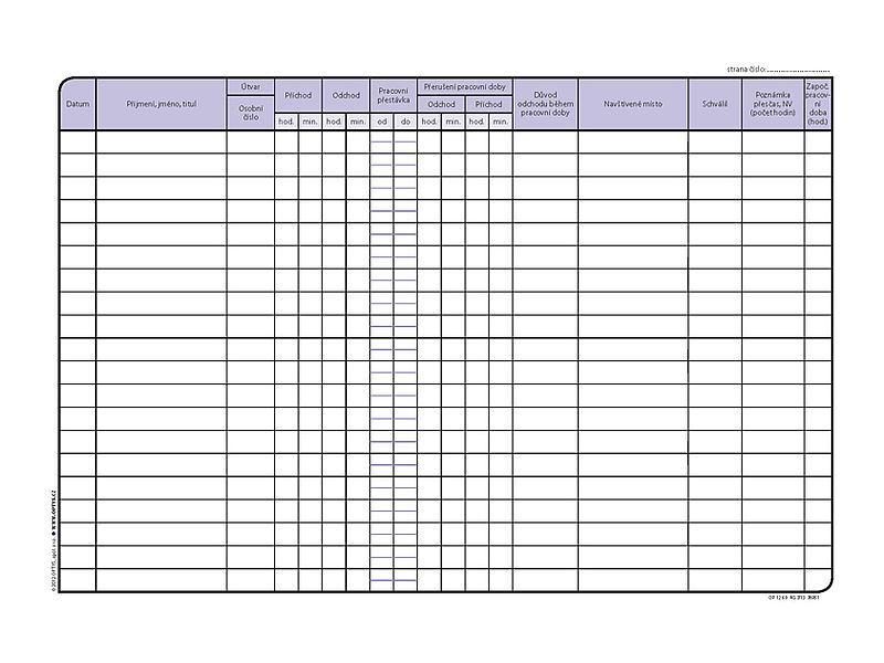 Kniha příchodů a odchodů formátu A4 na šířku,