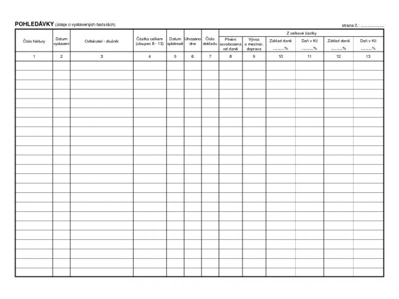 Kniha pohledávek pro evidenci odeslaných faktur.