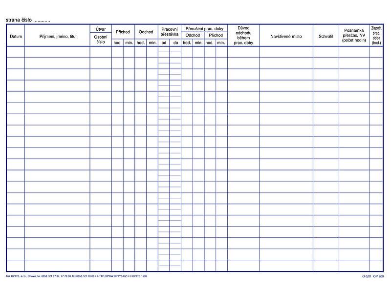Kniha příchodů a odchodů A4, Optys
