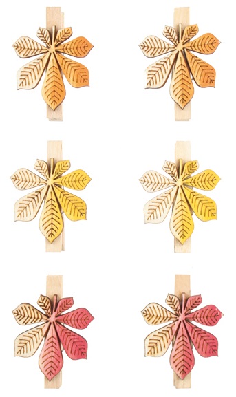 Kolíček, s dřevěnými listy, 6 kusů