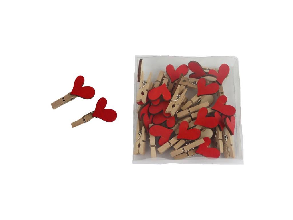 Kolíček srdce červené, 24 kusů