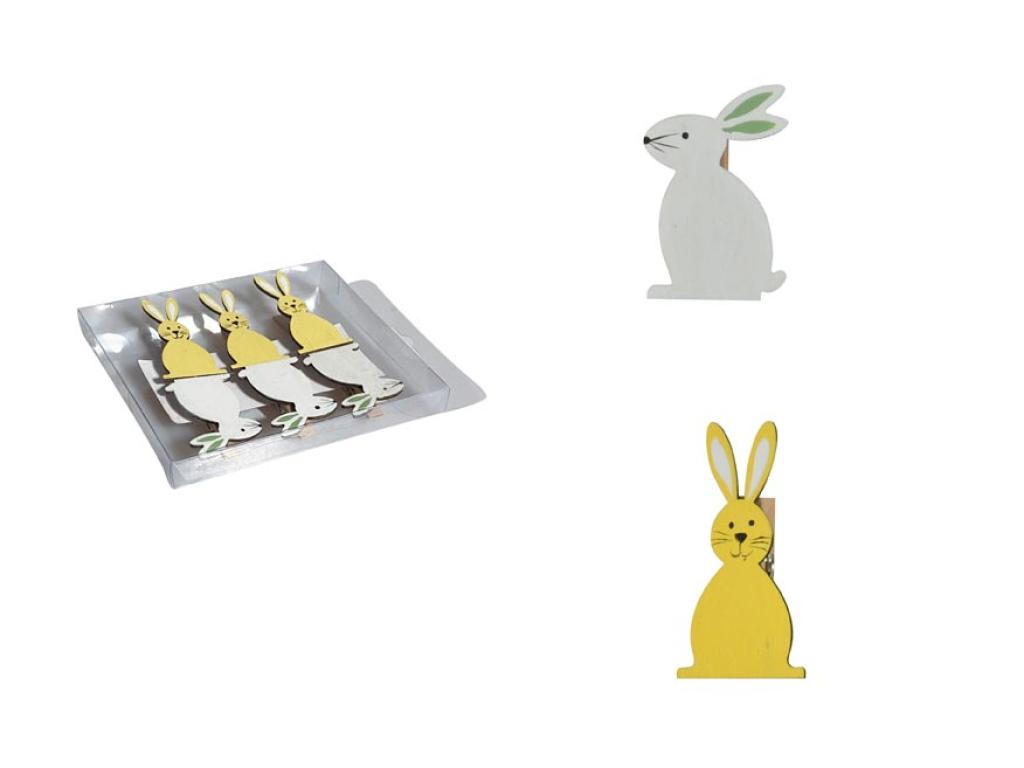 - 6 ks dekorací: 3 žluté zajíce a 3 bílé zajíce
