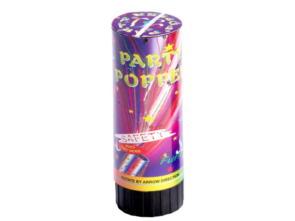 Barevné vystřelující konfety. Velikost: 11 cm.