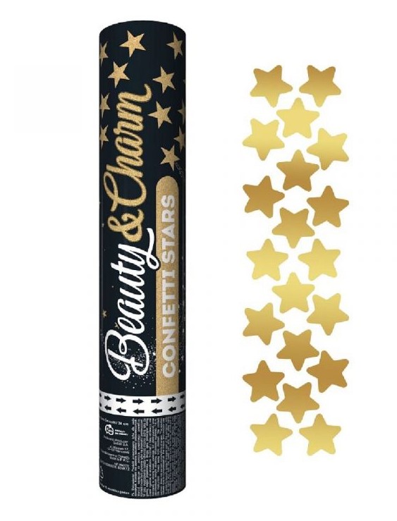 Konfety ve tvaru hvězd metalové zlaté. Obsah je
