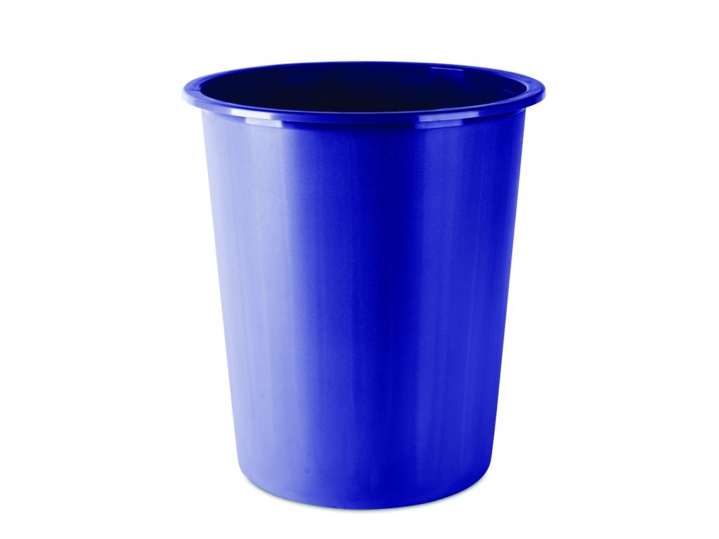 Plastový odpadkový koš modrý plný. Obsah 14 litrů.