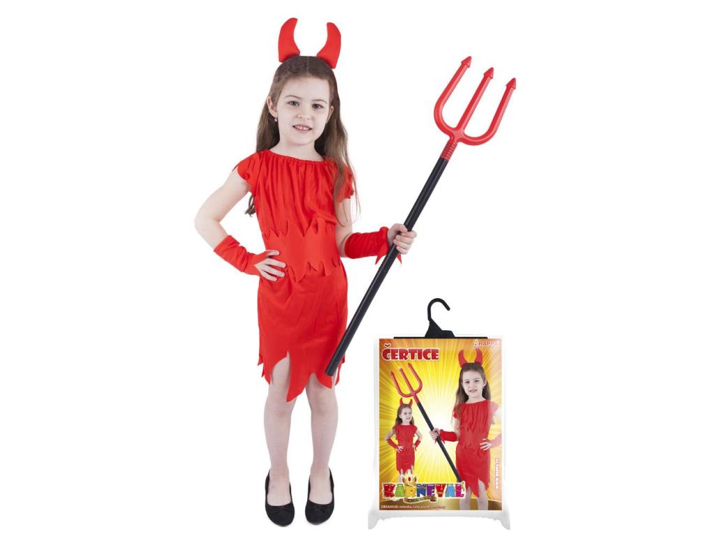 Balení obsahuje šaty, čelenku s rohy, návleky na