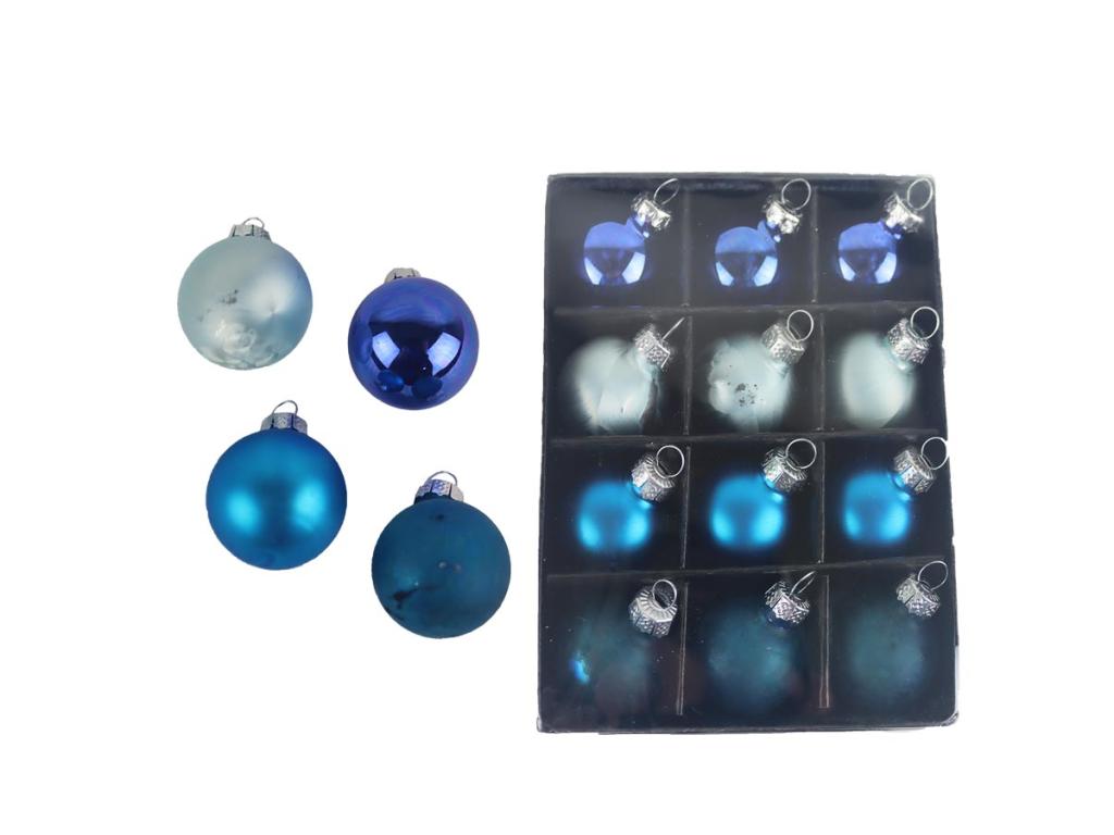 Koule 3cm-12ks, modré odstíny, skleněné
