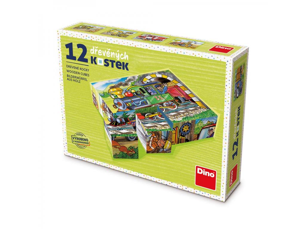 Kubus dřevěné kostky Mašinka 12ks