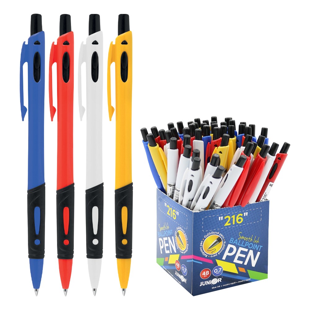 Kuličkové pero s plastovým tělem a ergonomicky
