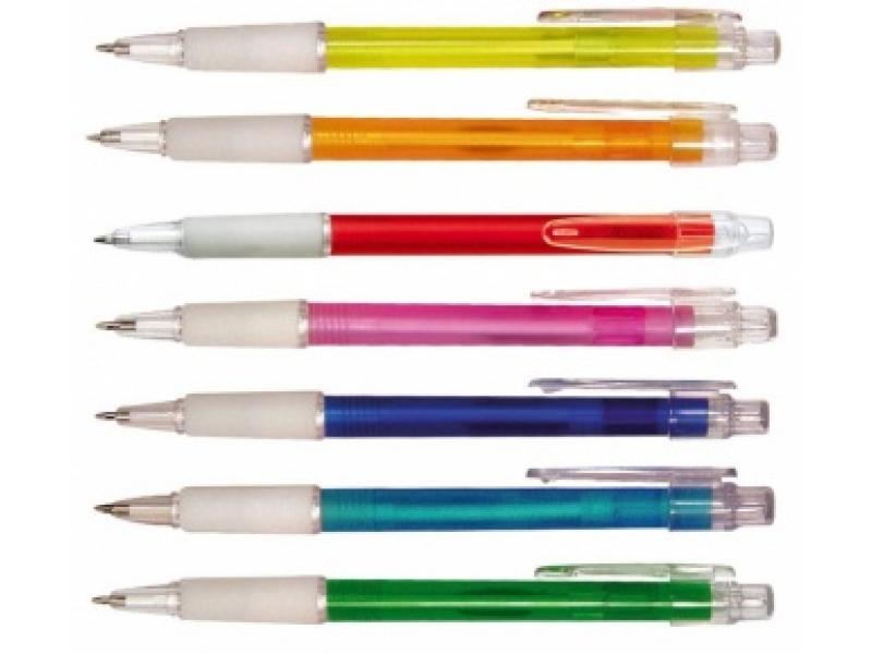 Plastová propiska s gumovým úchopem v