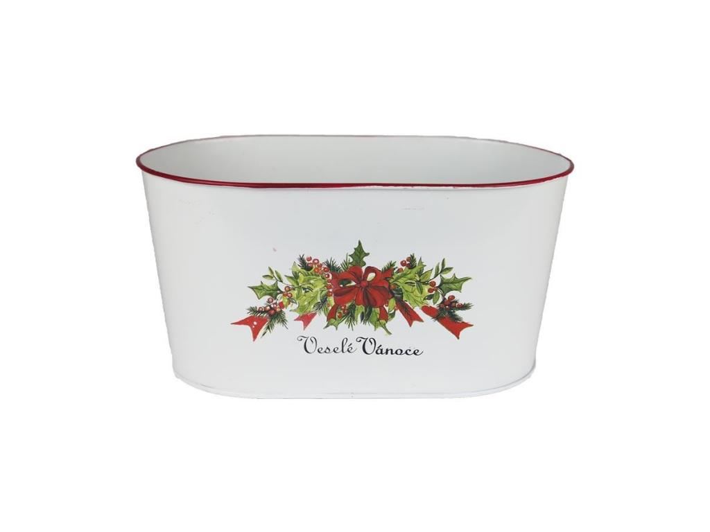 Květináč plechový oválný, bílo-červeno-zelený