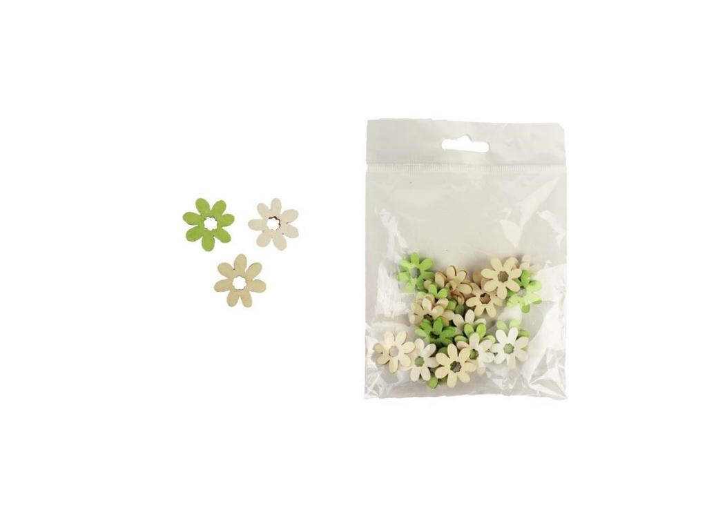 Kytky dekorační 24 kusů, zelené, bílé, béžové