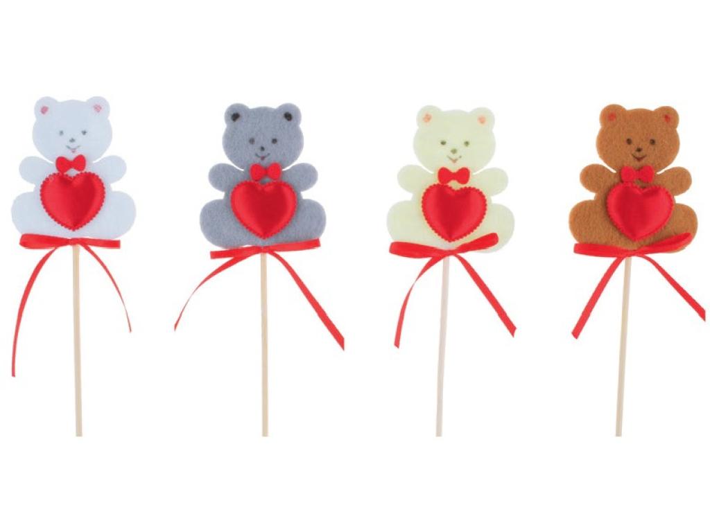 Medvídek z filcu se srdíčkem zápich 6,5 cm