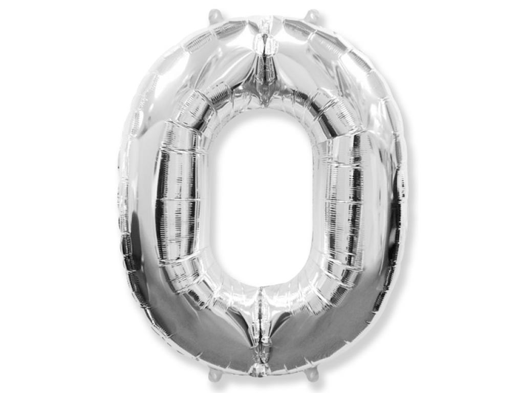 Fóliový balónek číslice 0. Stříbrná barva. Délka