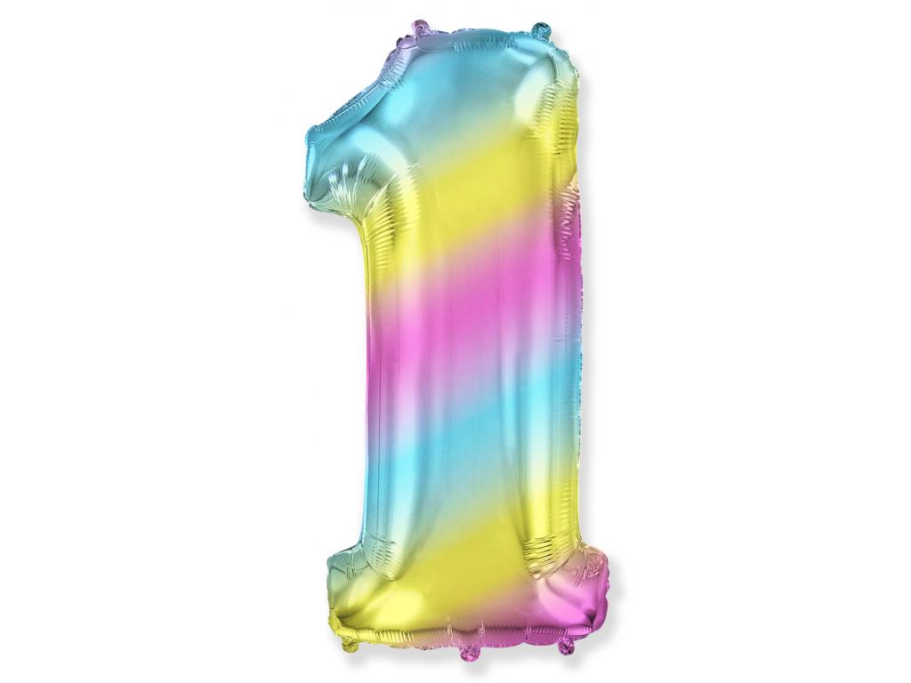 Fóliový balónek číslice 1. Duhová barva. Délka 102