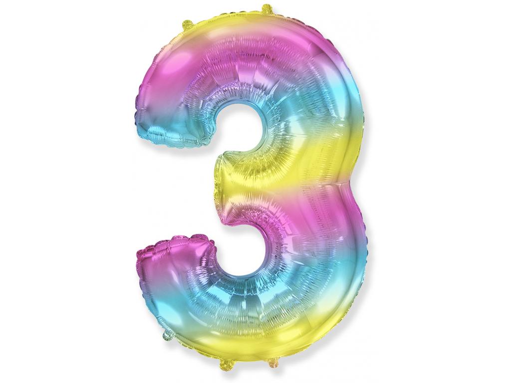 Fóliový balónek číslice 3. Duhová barva. Délka 102