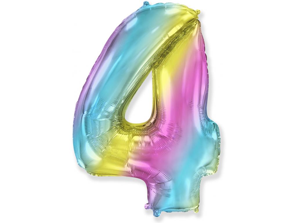 Fóliový balónek číslice 4. Duhová barva. Délka 102