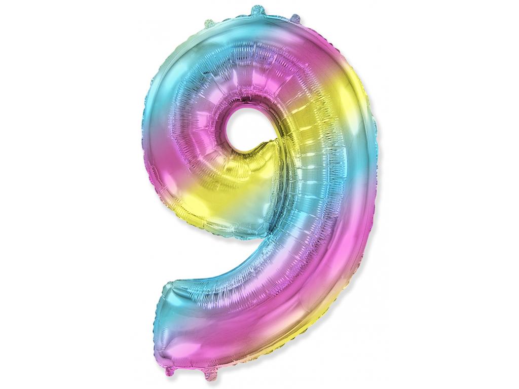 Fóliový balónek číslice 9. Duhová barva. Délka 102