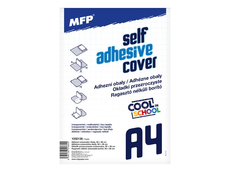 Transparentní adhézní obal o rozměrech 50 x 36 cm.