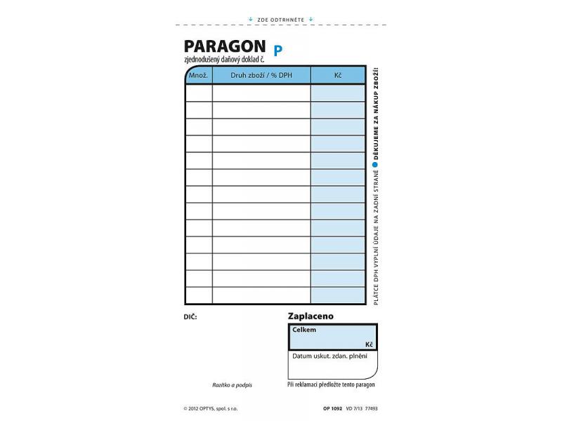 Nepropisovací, číslovaný, formát A6 na výšku.