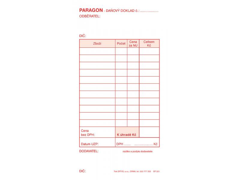 Paragon s DPH, samopropisovací, Optys