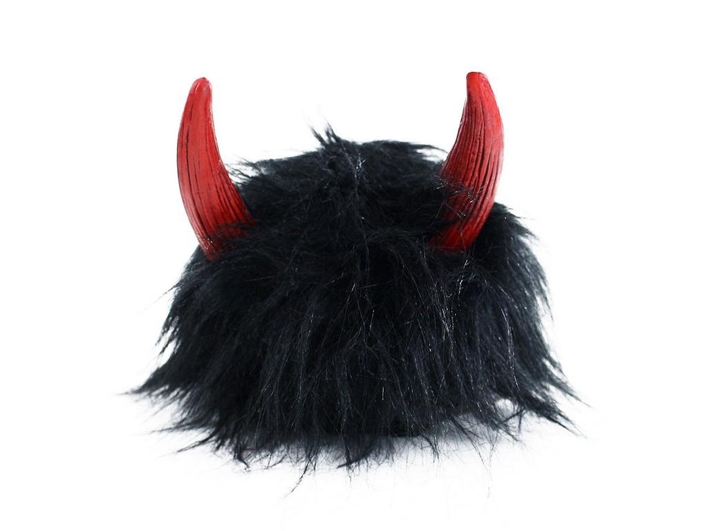 Karnevalová paruka v motivu čerta. Paruka má černé