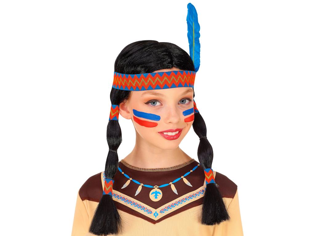Dětská černá indiánská culíkatá paruka s čelenkou