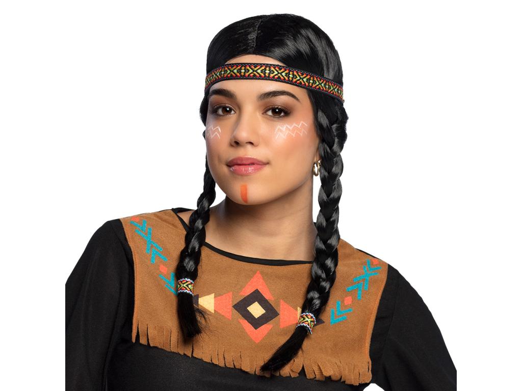 Paruka indiánky s culíky a čelenkou. Důležitý