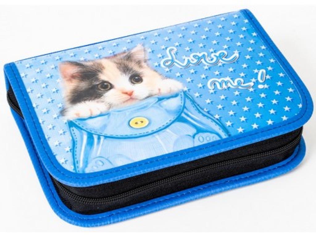 Textilní jednobarevný penál se dvěma klopami,