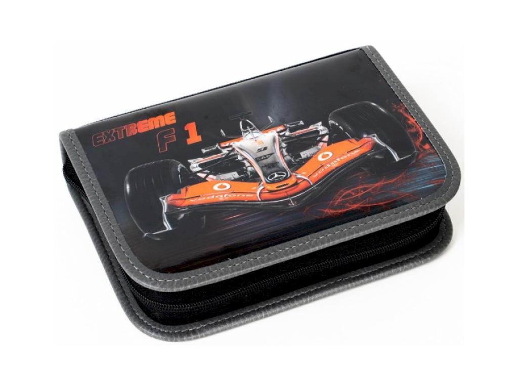 Textilní jednopatrový penál se dvěma klopami,