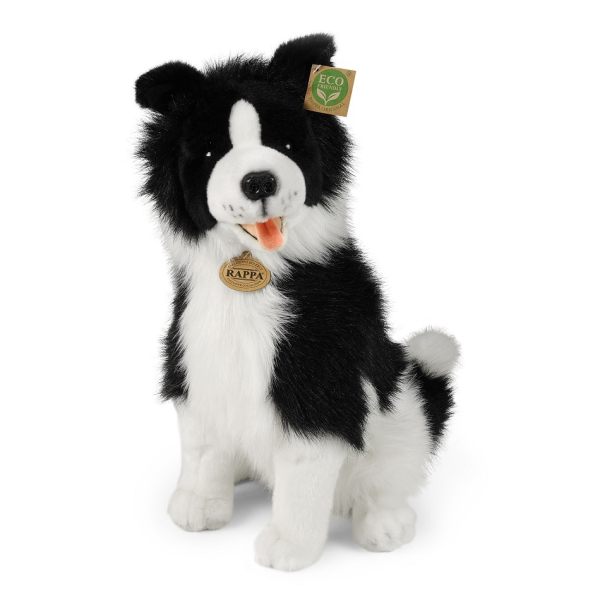 Plyšový pes rasy border kolie měří 40 cm a díky