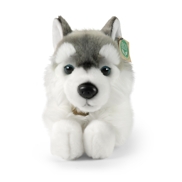 Plyšový pes rasy Sibiřský husky měří 32 cm a díky