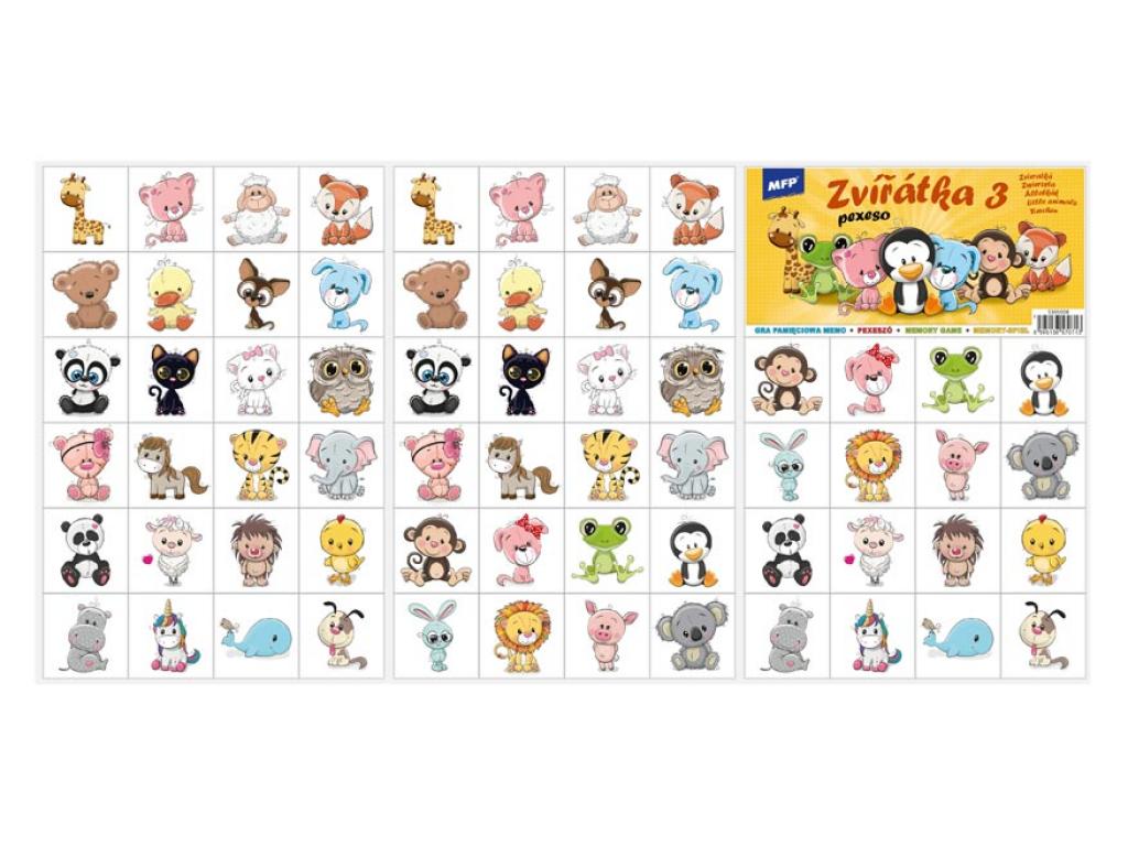 Pexeso se skládá ze tří A4, na kterých najdete 64