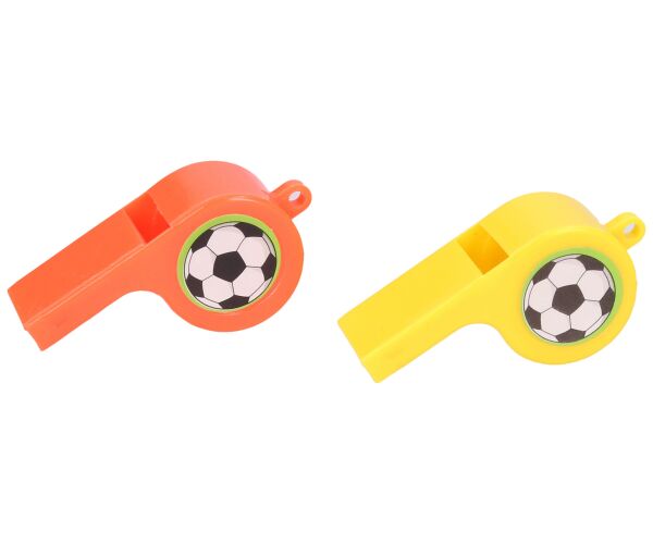 Píšťalka plastová. Velikost 5 cm. Červená, žlutá