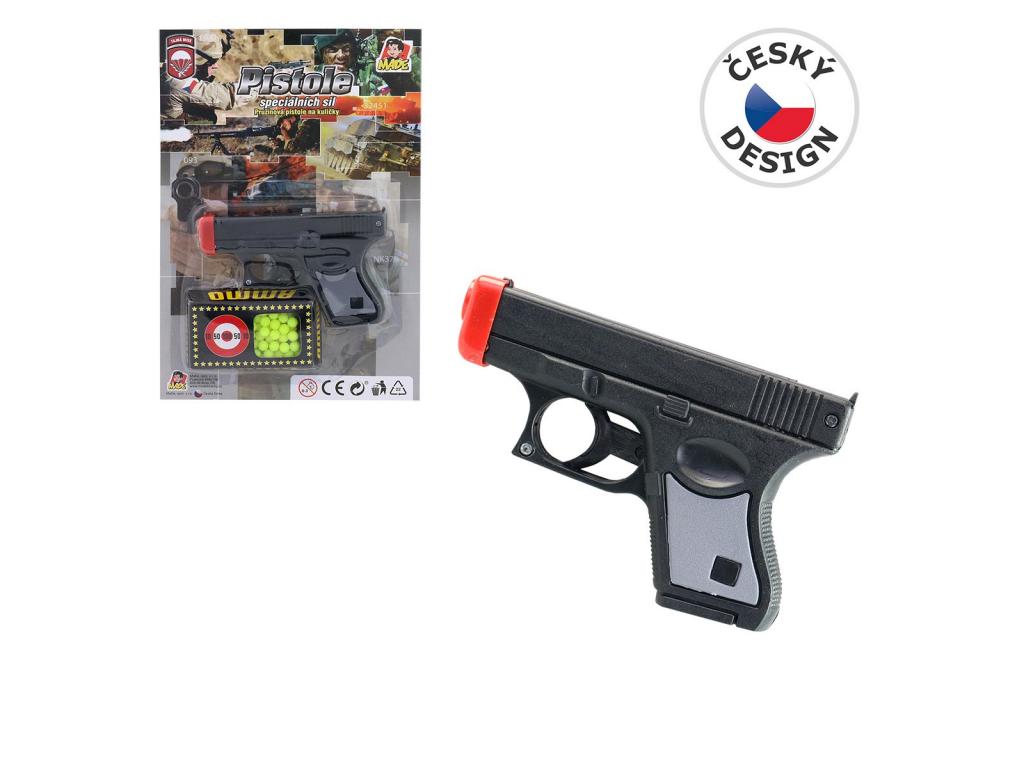 Plastová pistole na kuličky o velikosti cca 18 cm.