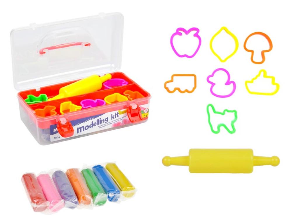 - 7 barev modelovací hmoty (růžová, oranžová,