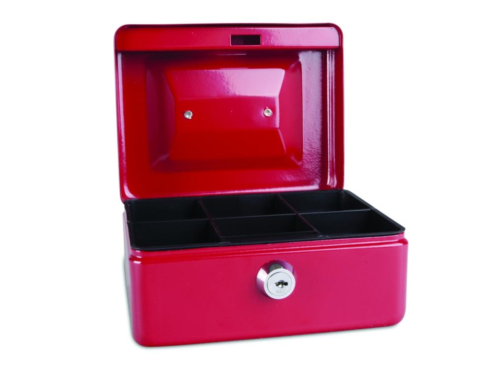 Přenosná kovová pokladnička k uchování bankovek a