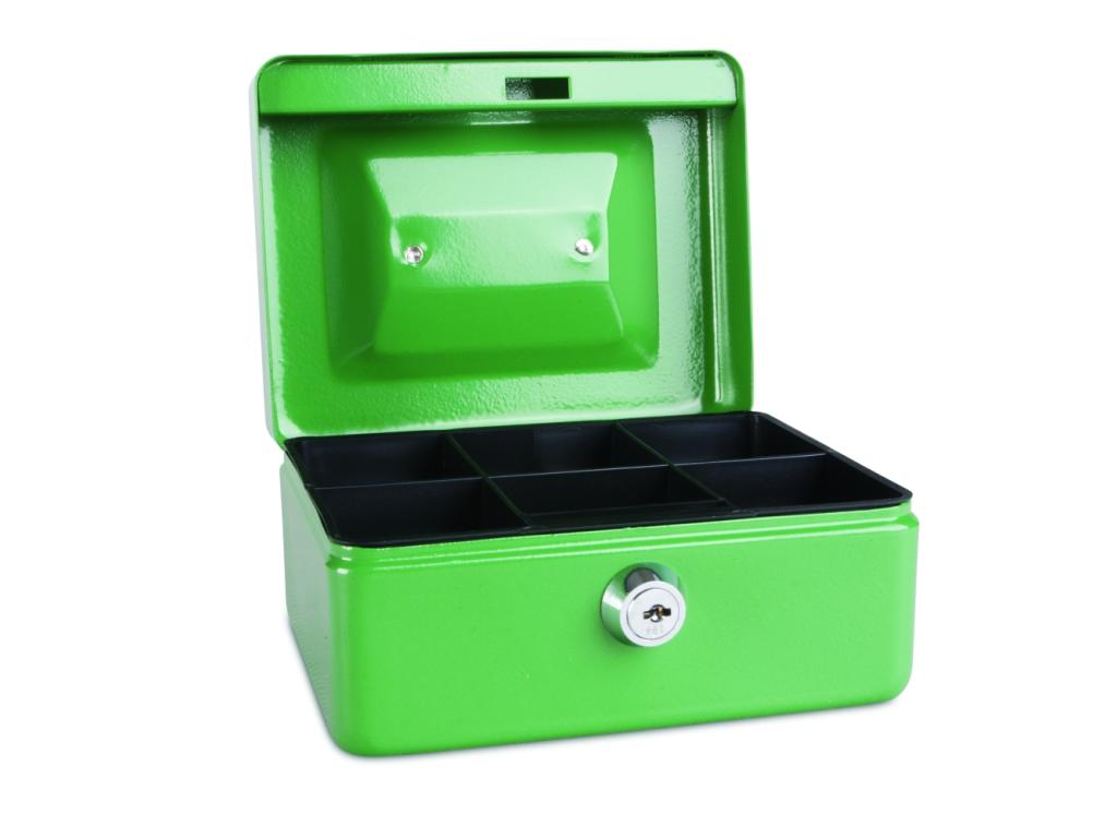 Přenosná kovová pokladnička k uchování bankovek a