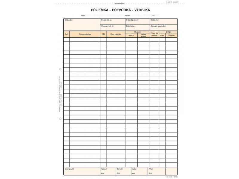 Příjemka, převodka, výdejka formátu A4,