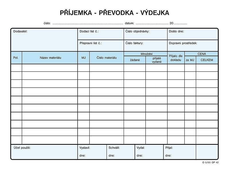 Příjemka-převodka-výdejka nepropisovací formátu