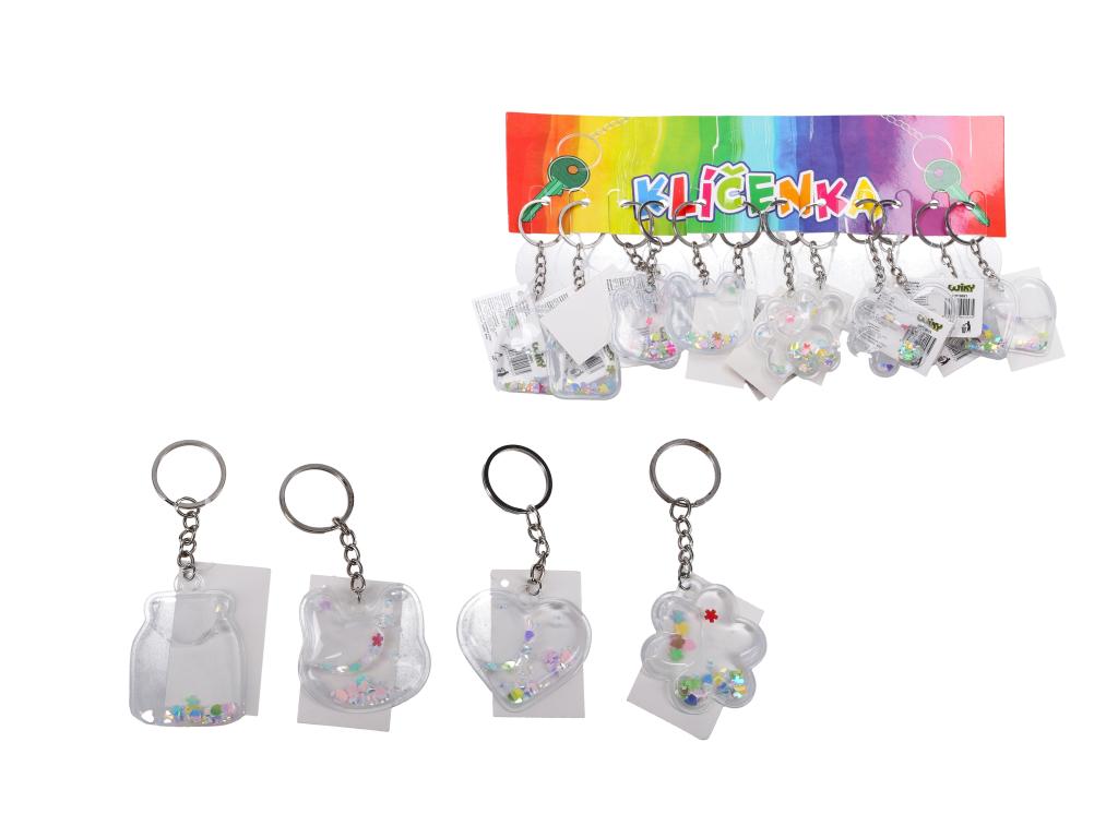 Klíčenka akrylová s glitrem a tekutinou.
