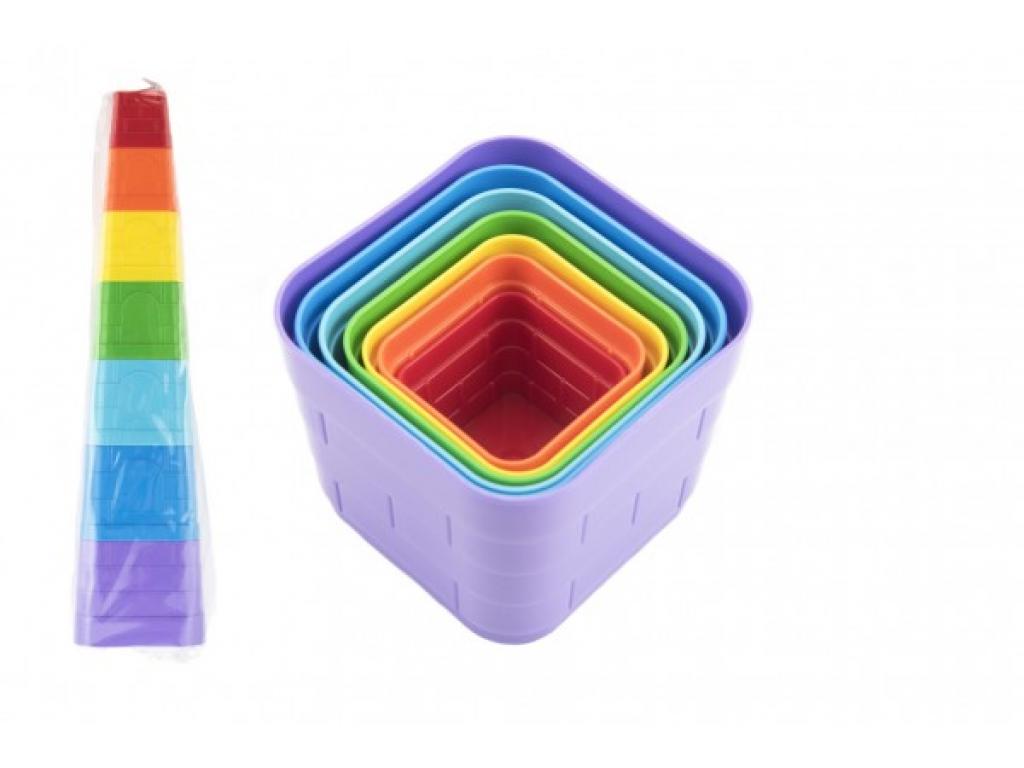 Plastový kubus obsahuje sedm hranatých dílů